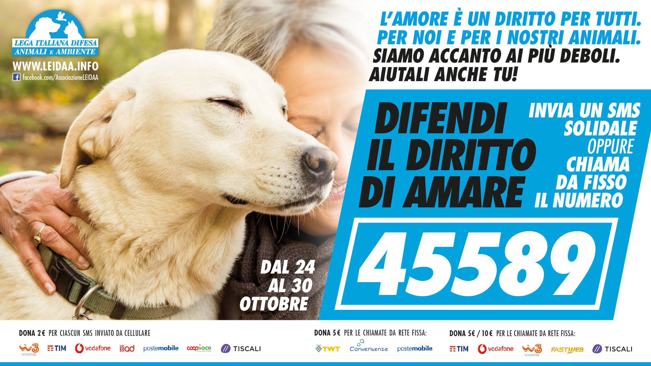 DAL 24 AL 30 OTTOBRE BASTA UN SMS AL 45589 PER SOSTENERE L’INIZIATIVA DI LEIDAA “IL DIRITTO DI AMARE”