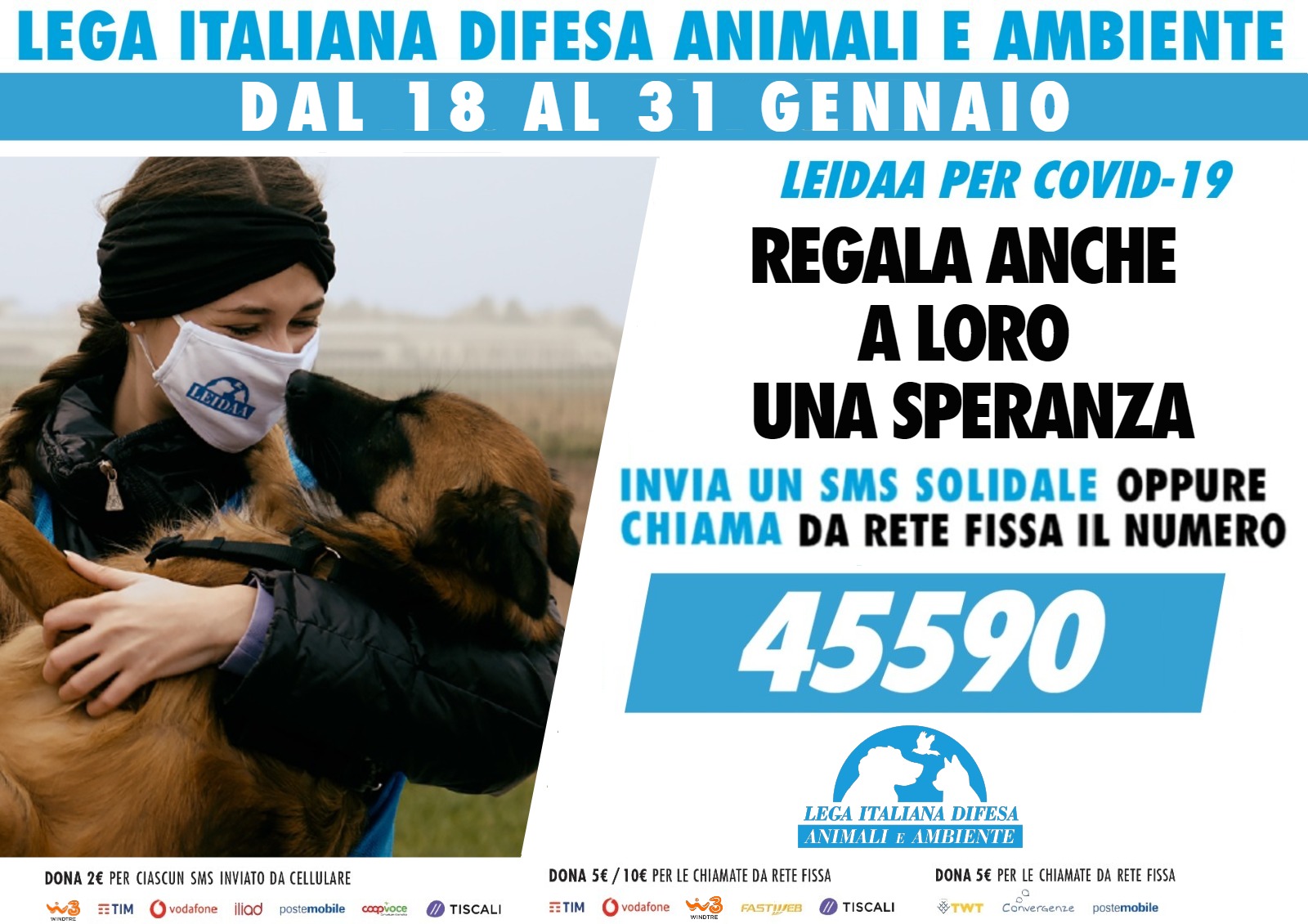 2021, ANNO DELLA SPERANZA ANCHE PER GLI ANIMALI”: DAL 18 AL 31 GENNAIO BASTANO UN SMS O UNA CHIAMATA AL 45590 PER SOSTENERE LA NUOVA FASE DELL’INIZIATIVA “LEIDAA PER EMERGENZA COVID-19”
