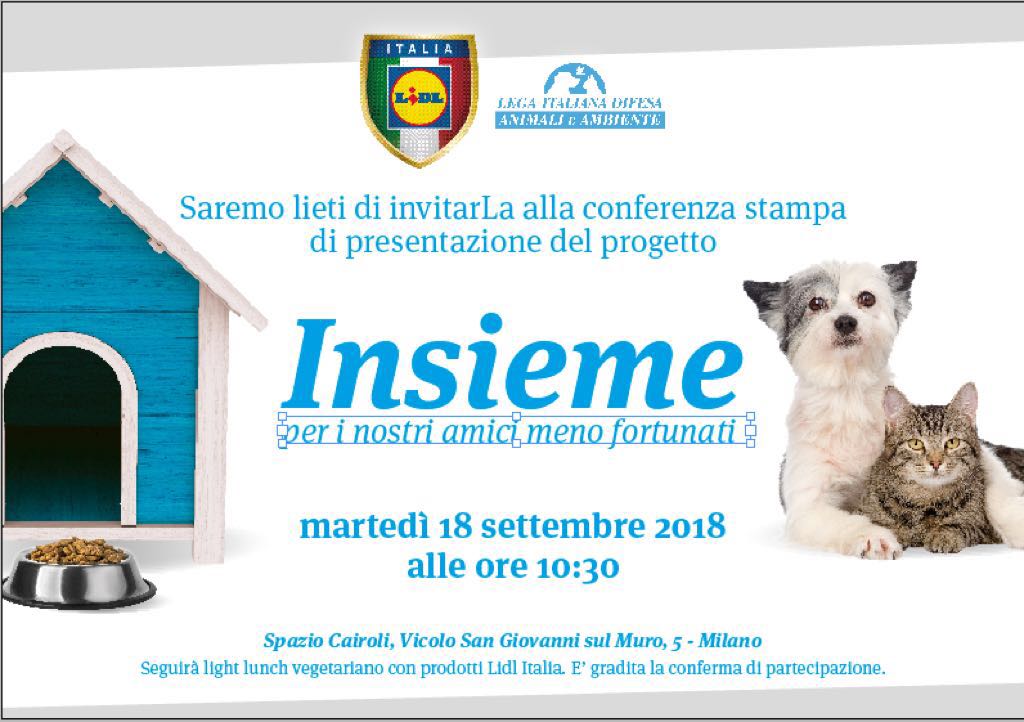 LEIDAA E LIDL ITALIA INSIEME PER AIUTARE GLI ANIMALI: MARTEDI’ 18 SETTEMBRE LA PRESENTAZIONE DELL’INIZIATIVA COMUNE