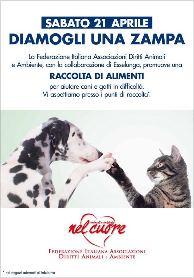 ANIMALI ABBANDONATI: SABATO 21 RACCOLTA DI SOLIDARIETA’ IN OLTRE 100 PUNTI-VENDITA ESSELUNGA, A CURA DELLA FEDERAZIONE ITALIANA ASSOCIAZIONI DIRITTI ANIMALI E AMBIENTE