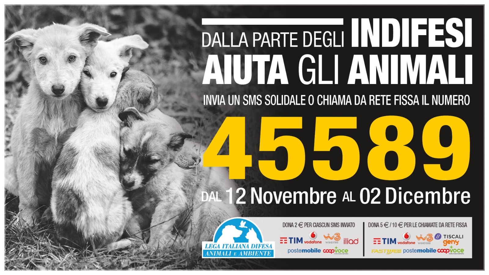 LEIDAA: FINO AL 2 DICEMBRE INVIA UN SMS SOLIDALE AL 45589 PER SALVARE LA VITA DEGLI ANIMALI INDIFESI