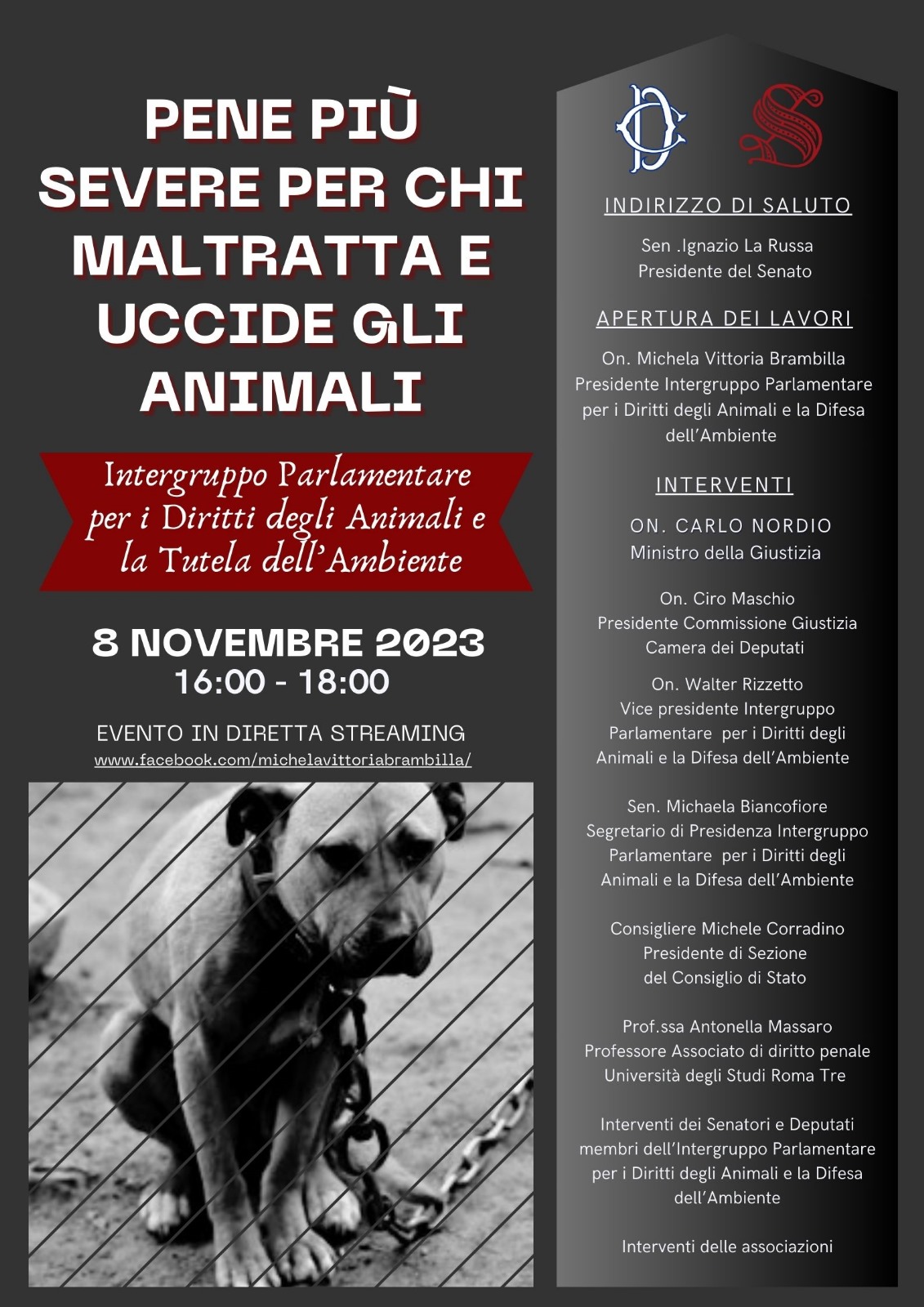 “Pene più severe per chi maltratta e uccide gli animali” è il titolo dell’evento promosso dall’Intergruppo parlamentare per i Diritti degli animali e la Tutela ...