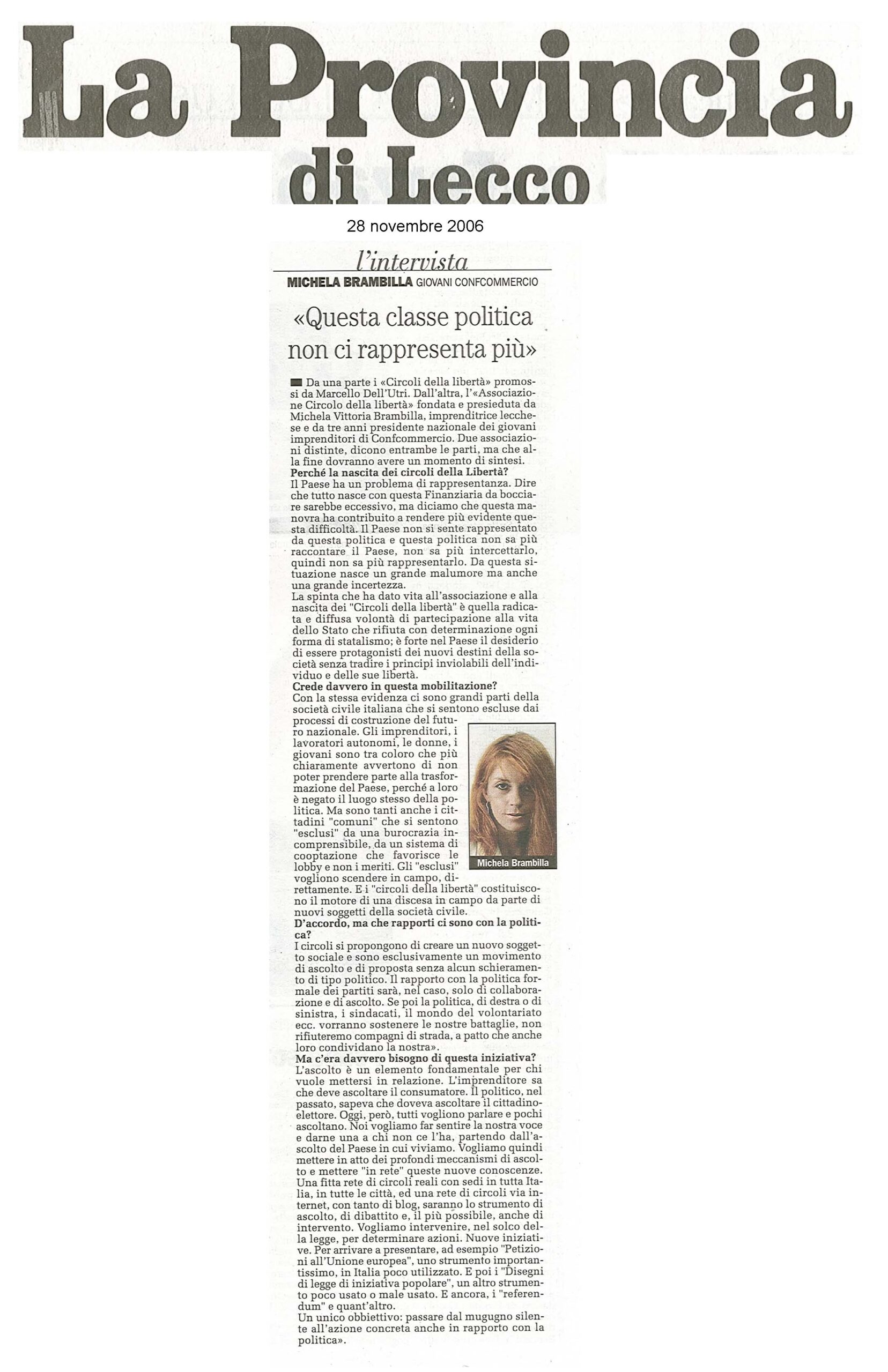 28/11/2006 – La Provincia di LeccoQuesta classe politica non ci rappresenta più
