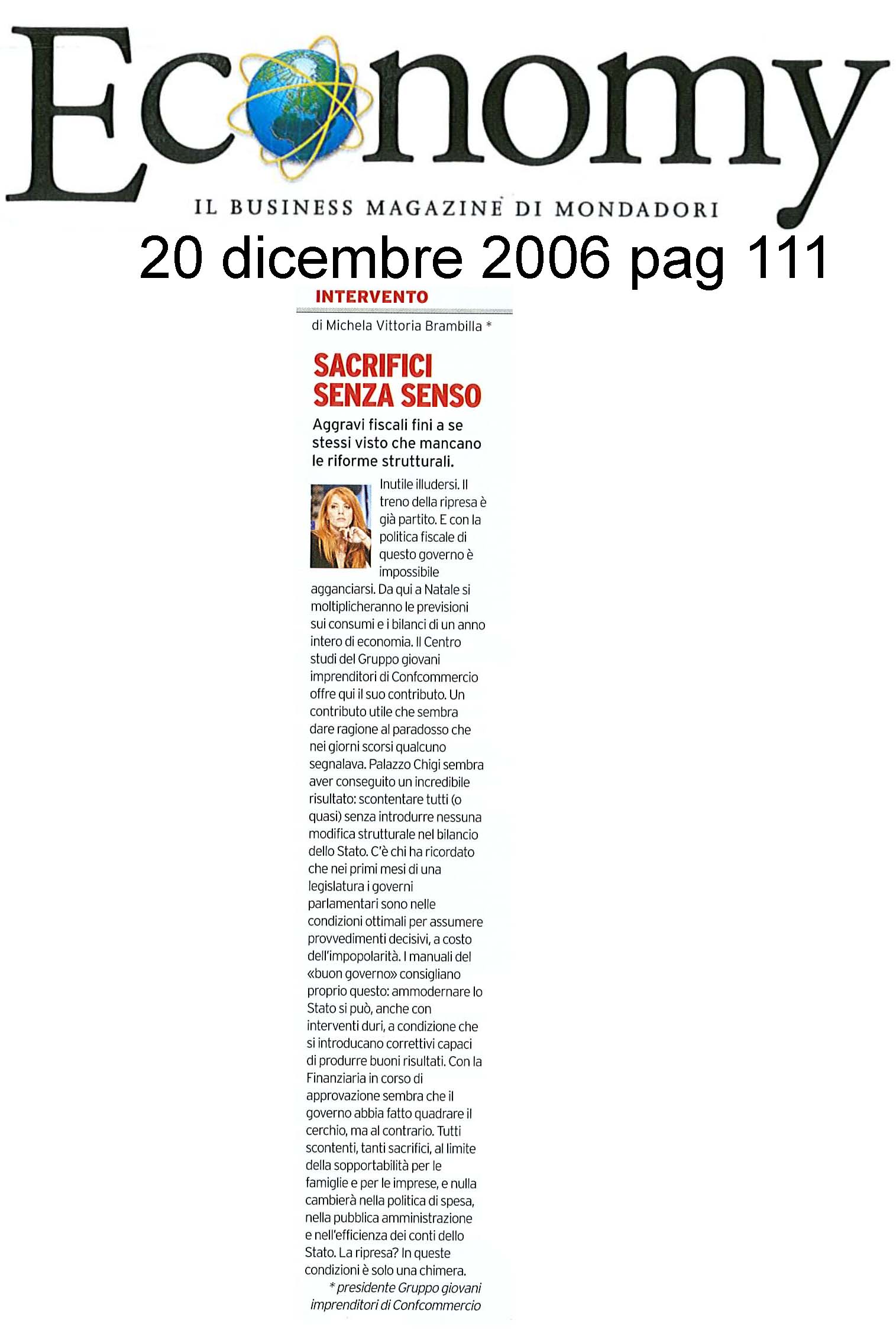 20/12/2006 – EconomySacrifici senza senso