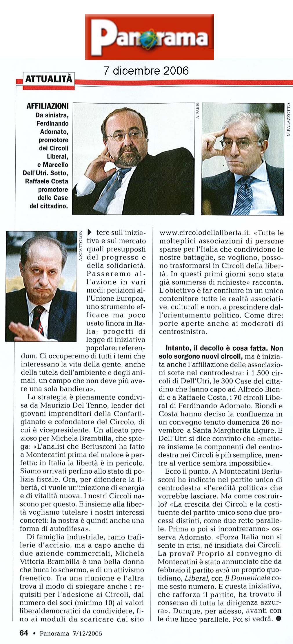 23/11/2006 – Il GiornaleUn "Circolo della Libertà" tra imprenditori e politica