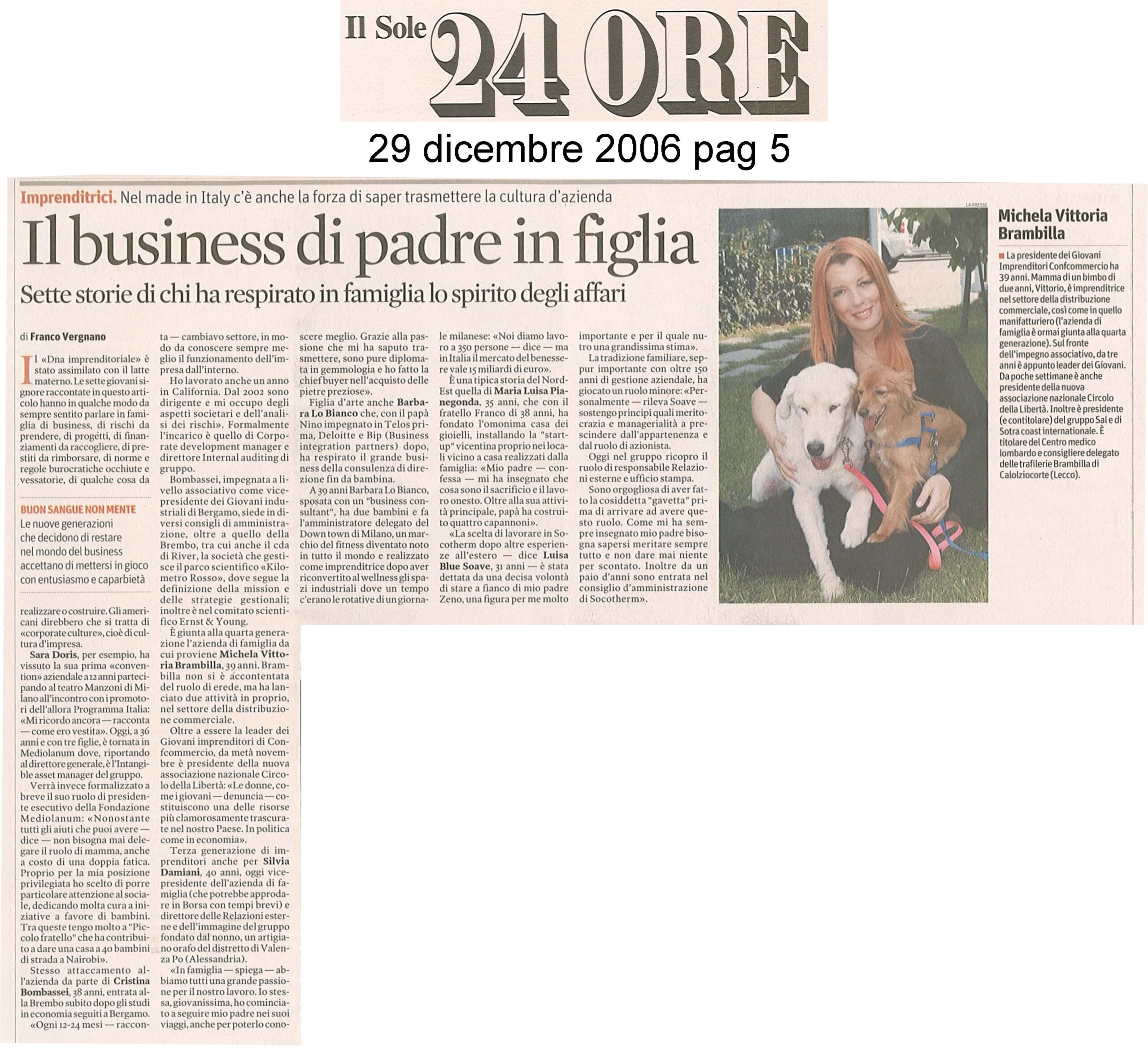 29/12/2006 – Il Sole 24 OreIl business di padre in figlia