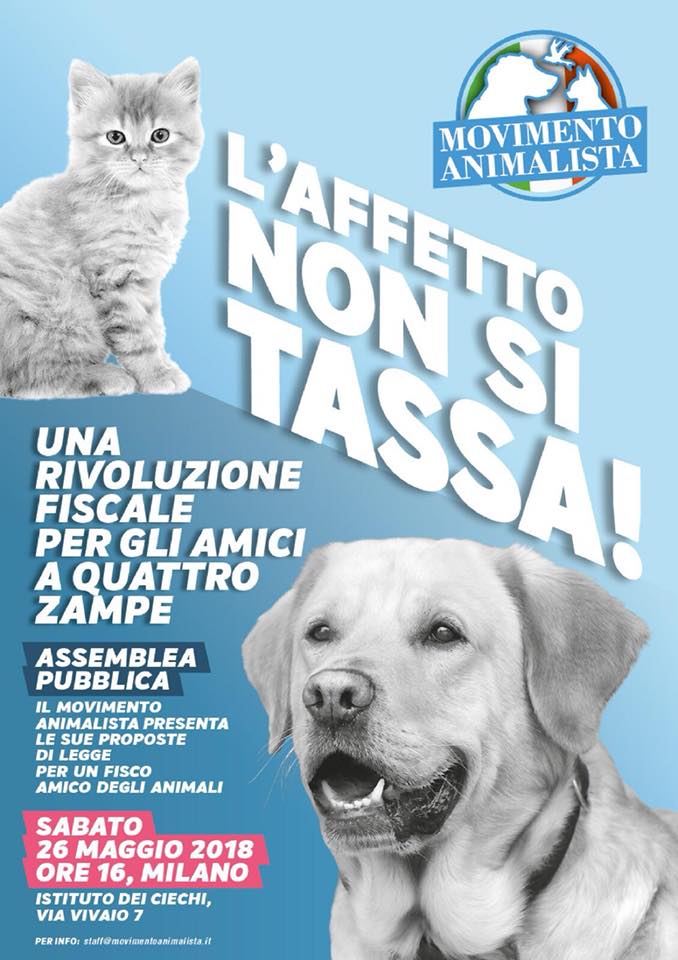 “L’affetto non si tassa”: sabato 26 maggio, a Milano, l’on. Michela Vittoria Brambilla presenta in un’assemblea pubblica le proposte di legge del Movimento Animalista per un fisco amico ...