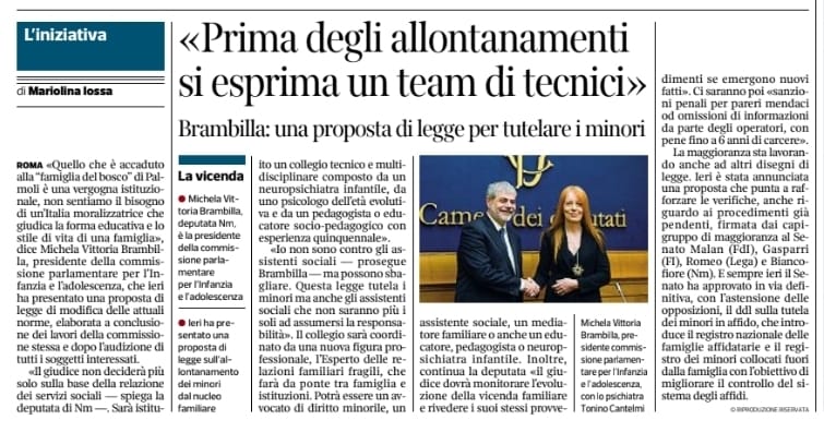 CORRIERE DELLA SERA. “PRIMA DEGLI ALLONTANAMENTI SI ESPRIMA UN TEAM DI TECNICI”